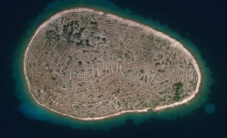 Paylaşılan görsel gerçek ve Hırvatistan da Adriyatik Denizi’nde bulunan Bavljenac Adası‘na ait. Ancak, adanın şekli ve parmak izi şeklini almasını sağlayan duvarların duvarların bir mimarın sevgilisinin parmak izi ile ilgisi bulunmuyor.