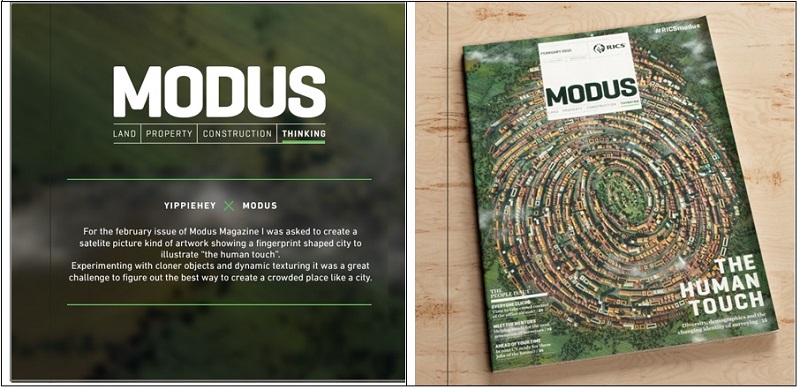 Almanya’da bir şehre ait sanılan parmak izi şeklindeki yerleşimi yansıtan görsel, MODUS adlı derginin 2015 yılı Şubat ayındaki sayısının kapağını süsleyen Jacob Eisinger adlı sanatçının 3 boyutlu tasarımı.