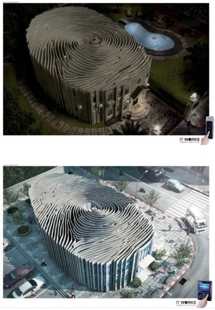 Paylaşılan görseldeki bina gerçekte inşa edilmiş bir yapı değil. Görsel, bir dijital tasarım çalışmasının ürünü. Tayland, Bangkok merkezli parmak izi güvenlik sistemleri üzerine çalışan It Works adlı firma için SpicyH adlı reklam ajansı tarafından oluşturulmuş. Adsoftheworld adlı internet sitesindeki kayıt tarihi 2011 olsa da, söz konusu tasarımın kökeninin 2006 yılına değin uzandığı da öne sürülmektedir.