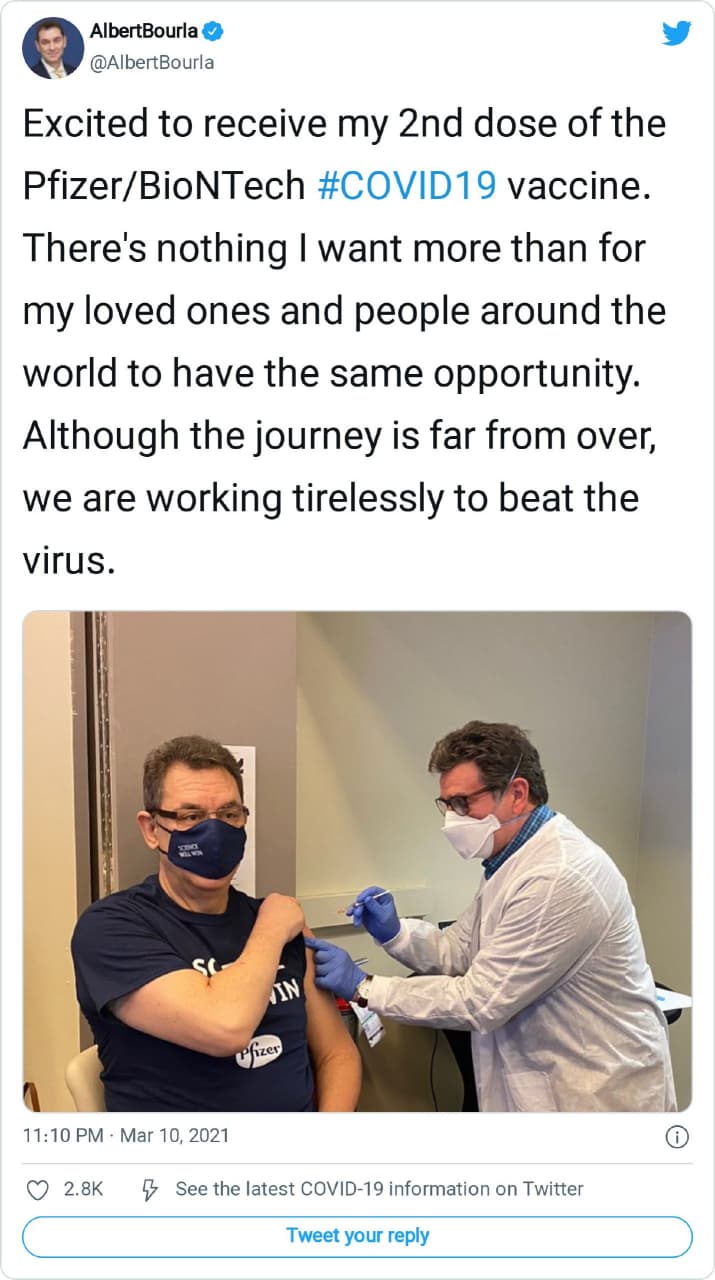 İddia edilenin aksine Pfizer CEO’su aşı tereddütlüsü ya da karşıtı değil; koronavirüs salgınına karşı aşı olunması yönünde çağrıda bulunan Pfizer CEO’su Albert Bourla, 2. doz koronavirüs aşısını 2021 yılı Mart ayında tamamlamıştı.