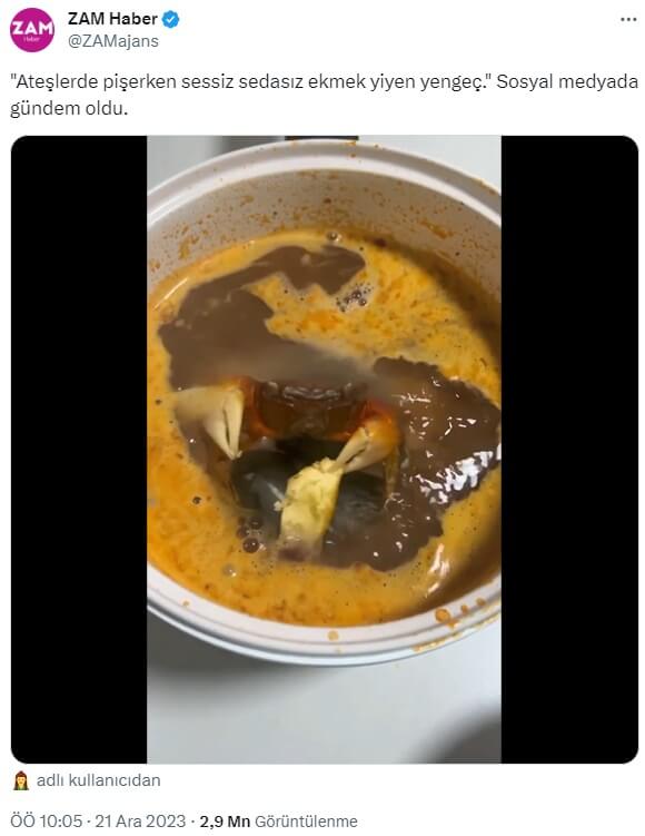 ZAM Haber (@ZAMajans) & BTT Haber: “‘Ateşlerde pişerken sessiz sedasız ekmek yiyen yengeç.’ Sosyal medyada gündem oldu.”