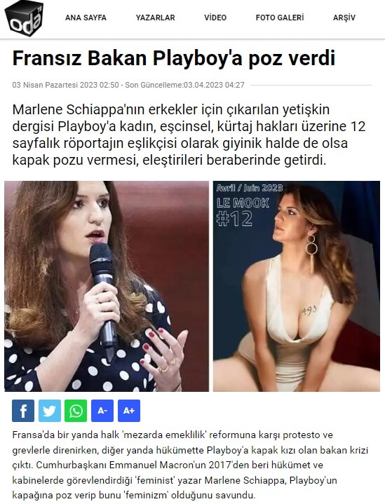 N’en déplaise aux rétrogrades et aux hypocrites.#Playboy— 🇫🇷 MarleneSchiappa (@MarleneSchiappa) April 1, 2023