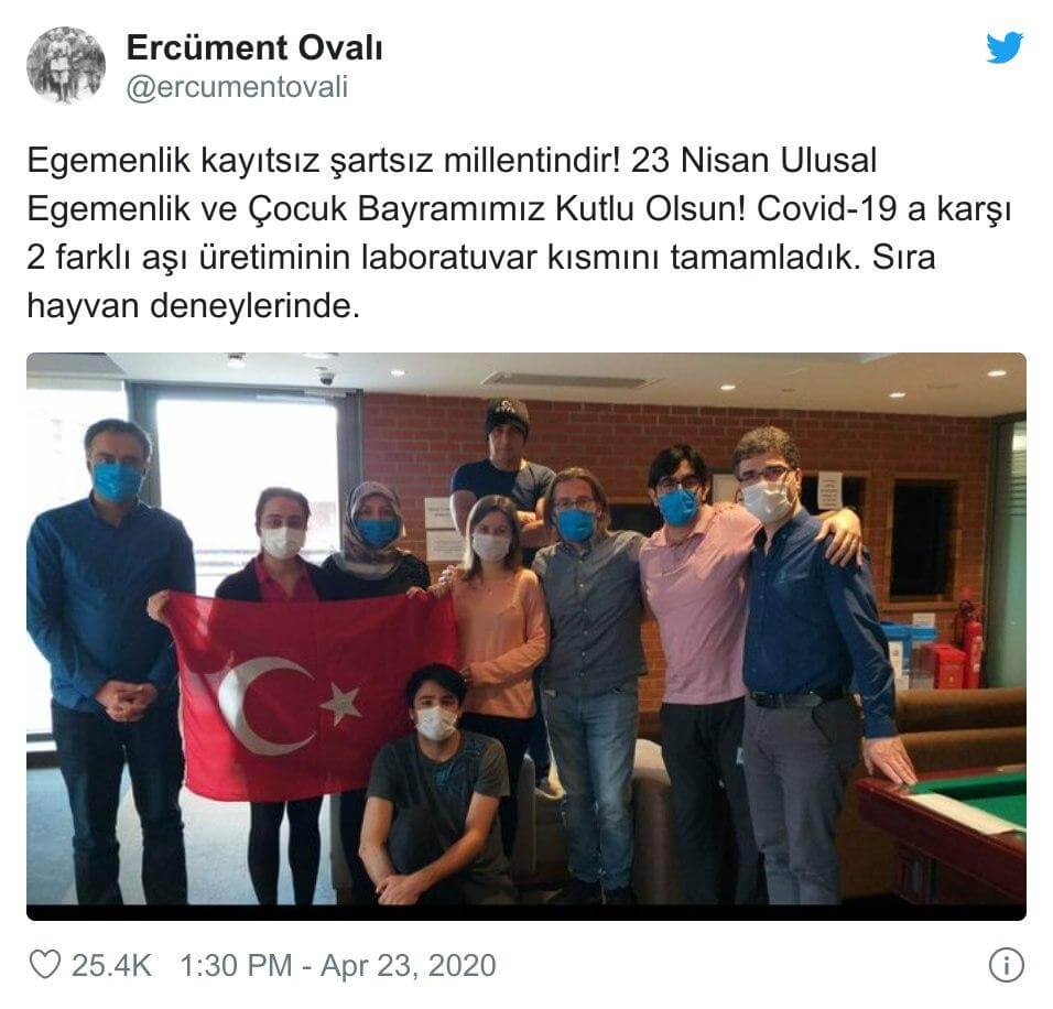 İLAVE: Ercüment Ovalı, 23 Nisan günü yaptığı paylaşımda ise koronavirüs aşısının hayvan deneyi aşamasına geldiğini açıkladı. Ancak yaptığı duyuru, Ercüment Ovalı ve ekibinin aşı geliştirme çalışmalarının erken seviyelerinde olduğunu ortaya koymaktadır.