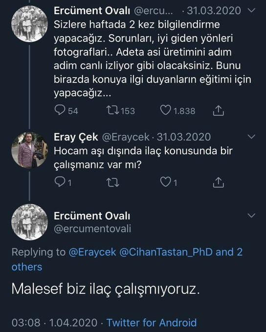 [Bir takipçinin “Hocam aşı dışında ilaç konusunda bir çalışmanız var mı?” sorusuna yanıt olarak]