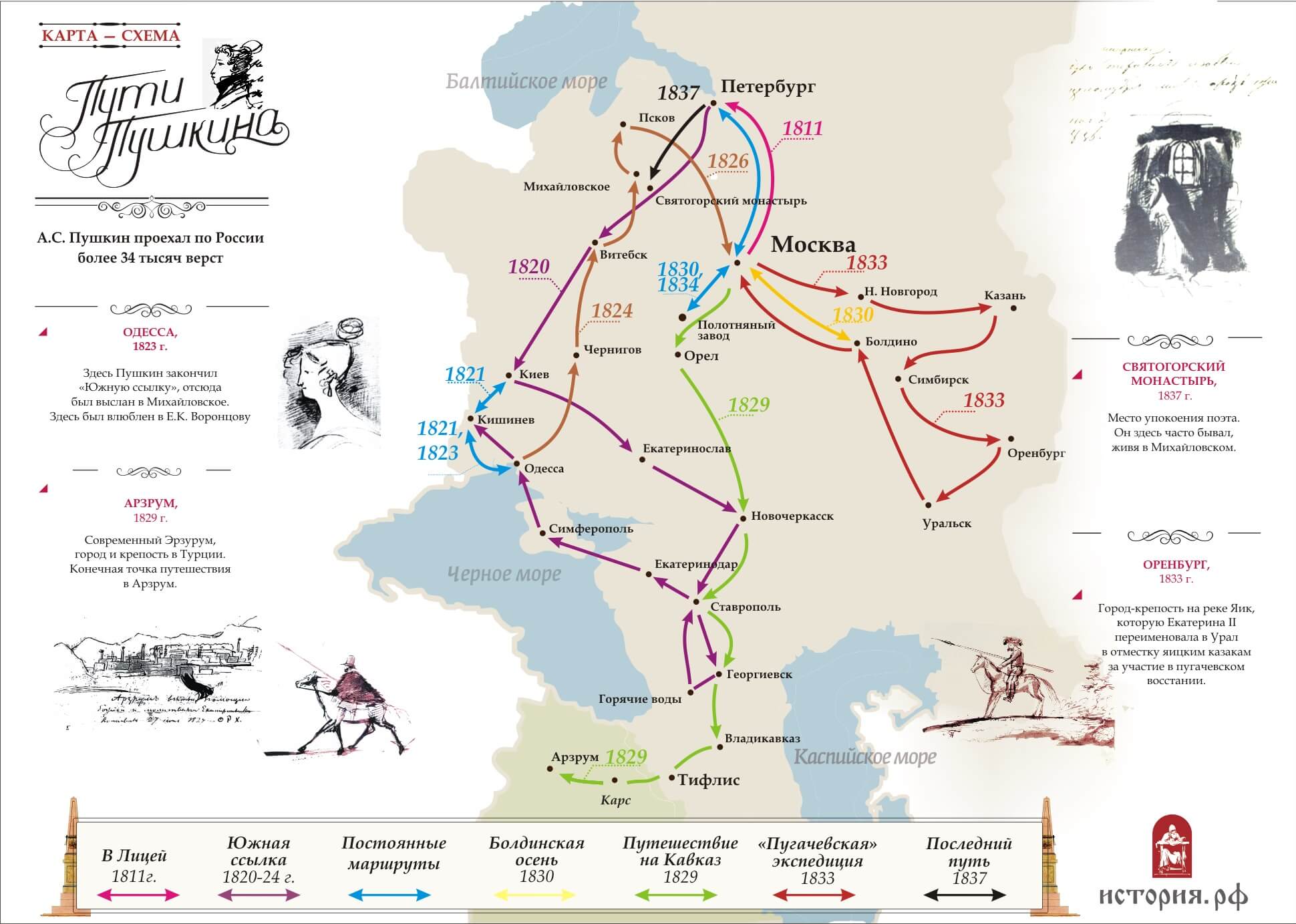 Rusya Tarihi adlı internet sitesinin hazırladığı Puşkin’in Rusya genelinde yaklaşık 55 bin kilometre (34 bin mil) uzunluğundaki seyahat rotasını yansıtan (Kars ve Erzurum’a geldiği rotayı da işaret eden) “Puşkin Yolu” adı verilen görselleştirme şöyleydi: