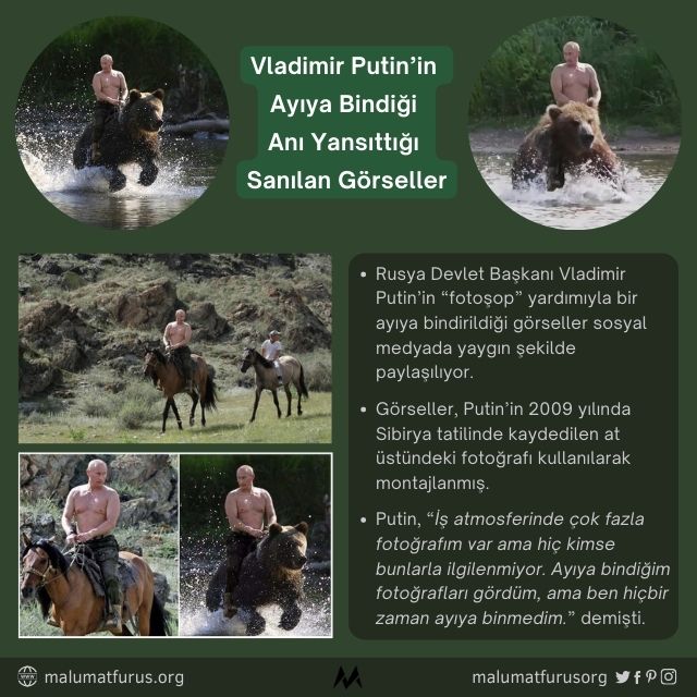 Söz konusu görsel, Vladimir Putin’in 2009 yılında Sibirya tatilinde kaydedilen at üstündeki fotoğrafı kullanılarak montajlanmış.