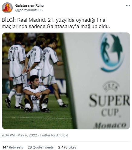 “BİLGİ: Real Madrid, 21. yüzyılda oynadığı final maçlarında sadece Galatasaray’a mağlup oldu.”