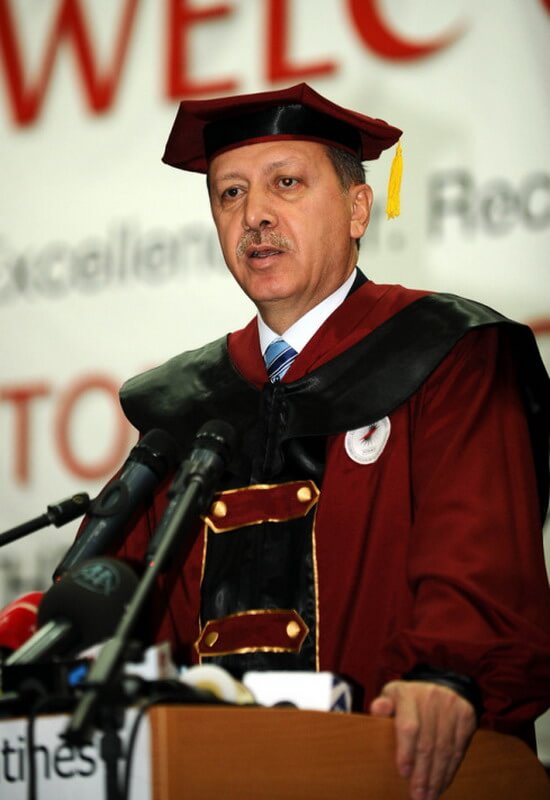 Bahse konu fahri doktora takdim töreninde dönemin Başbakanı günümüzün Cumhurbaşkanı Erdoğan’ın St. John’s Üniversitesi eski dekanlarından Cecilia Chang ve okulun başkanı Peder Donald J.Harrington ile birlikte görüntülendiği farklı kareler de mevcut.