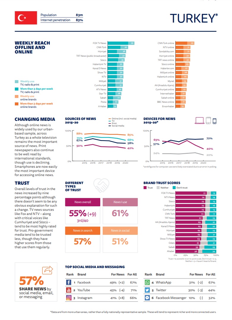Reuters’in raporunun Türkiye ile ilgili bulgularının yurt sathını temsil edebilecek yetkinlikte olmadığını, daha çok kentli nüfusa odaklandığını kabullendiğini de vurgulamakta fayda var.