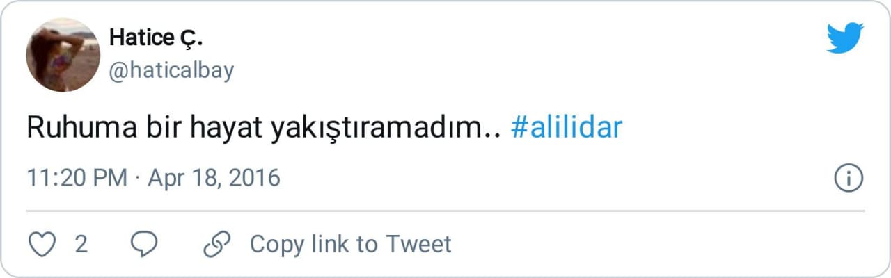 ‘Ruhuma bir hayat yakıştıramadım’ sözü Ali Lidar’ın “Dağınık Sicim” adlı şiirinde tırnak içerisinde kullanılmış.