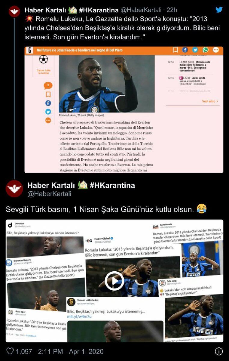 Bahsi geçen profil daha sonra Romelu Lukaku’nun transferi ile ilgili “Sevgili Türk basını, 1 Nisan Şaka Günü’nüz kutlu olsun” notuyla 1 Nisan şakası yaptığına dair bir paylaşımda bulundu.