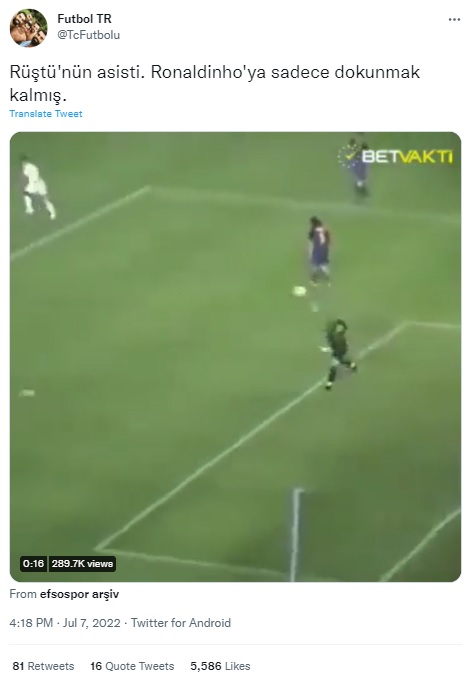 “Rüştü’nün asisti. Ronaldinho’ya sadece dokunmak kalmış.”