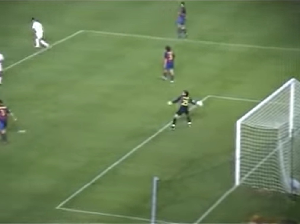 Farklı açılardan görüntüler izlendiğinde topu eliyle uzun mesafeye doğru oyuna sokarak Ronaldinho’ya ulaştıran kalecinin 25 numaralı formasıyla Víctor Valdés olduğu görülüyor.