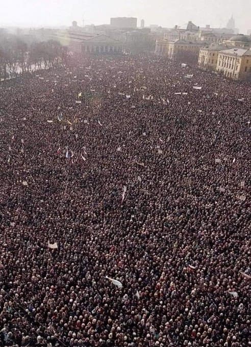 SSCB’nin çöküş sürecinde ülkenin geleceği hakkında 17 Mart 1991 tarihinde gerçekleştirilen referandumun öncesinde Mihail Gorbaçov’un istifası talebiyle gerçekleşen hükümet karşıtı mitinge 500.000 kişinin katıldığı belirtilmektedir.