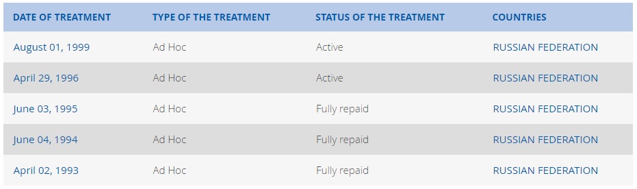Rusya, Paris Kulübü ile 1993, 1994, 1995, 1996 ve 1999 yıllarında borç yeniden yapılandırma anlaşmaları imzalamıştı.