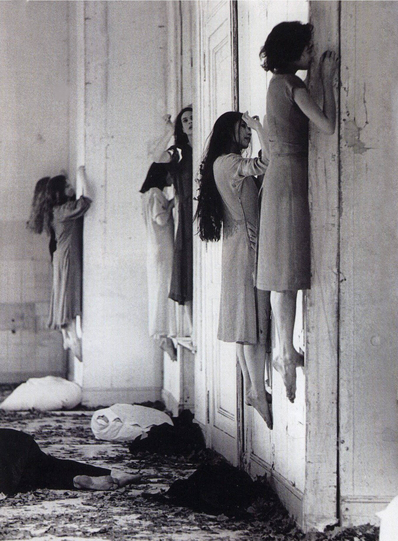 Yerçekimine meydan okuyarak duvarda asılı duran kadınları gösteren fotoğraf aslında iddia edildiği gibi Rusya’daki bir akıl hastanesinden değil. İddianın aksine, oldukça garip ve ürkütücü bu fotoğraf, Pina Bausch adlı sanatçının sahnelediği Blaubart (ya da Bluebeard ya da Barbe Bleue) adlı performansından. Bausch’un 1977 yılında sergilediği kadın bedenine yönelik şiddeti konu edinen bahse konu dans gösterisinde kadınların duvar üzerinde durabilmelerini sağlayan özel delikler ve destekler bulunmaktadır.