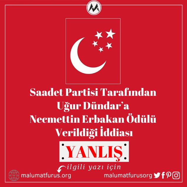 Saadet Partisi Tarafından Erbakan Ödülleri Programında Uğur Dündar’a Ödül Verildiği İddiası Doğru Değil