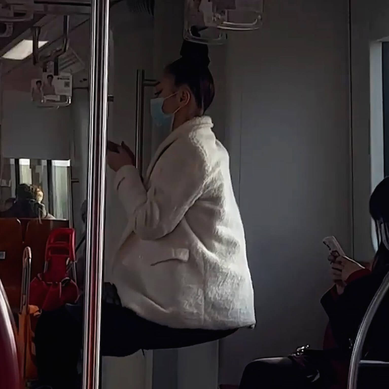 Şanhay’daki metroda saçlarını metro tutacak bölümüne iliştirerek havada asılı hâlde görülen kadın aslında bir akrobat.