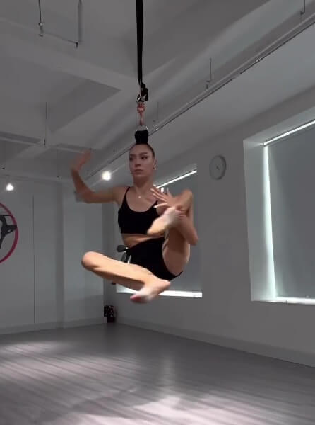 Metal bir çubuğa dolanmış saçlarından asılı şekilde lotus pozisyonunda bağdaş kurmuş şekilde sallanırken görülen Rus akrobatın adı Darina (Snopes, soyadını paylaşmaktan imtina eden Darina’nın tam adının Darina Matveyeva olduğunu aktarmış).