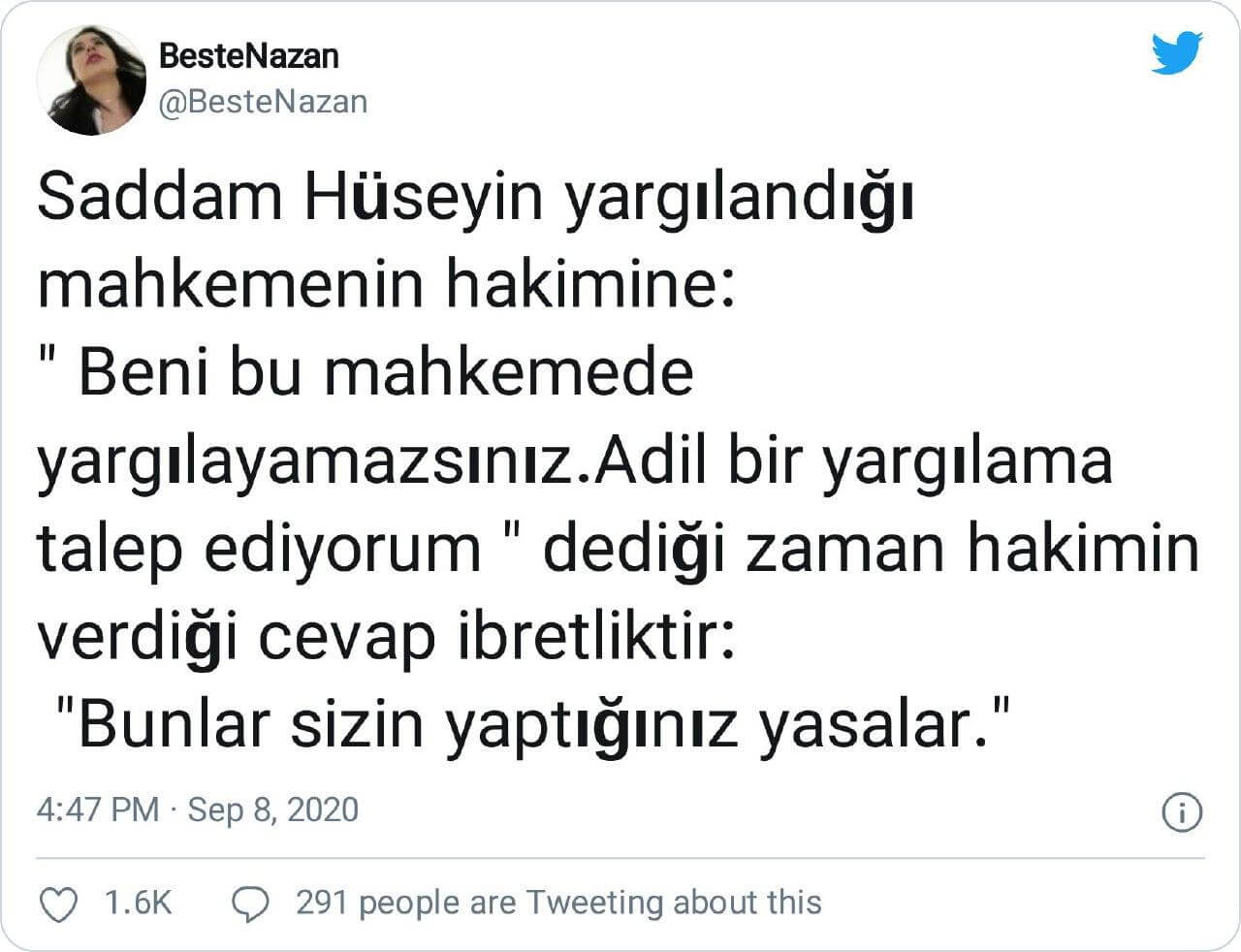 “Beni bu mahkemede yargılayamazsınız. Adil bir yargılama talep ediyorum” dediği zaman hakimin verdiği cevap ibretliktir: