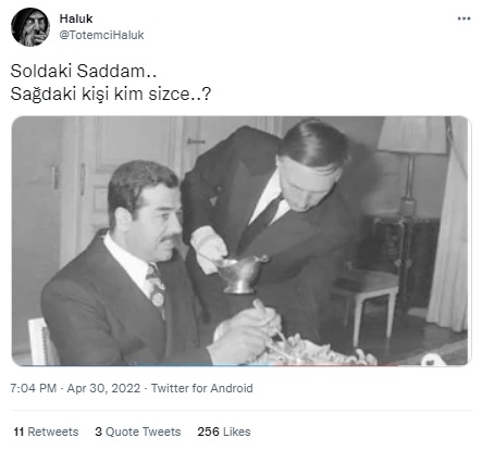 Saddam’a bir garsonun servis yaparken görüntülendiği fotoğrafın sosyal medyada farklı zamanlarda tekrar dolaşıma girdiği görülüyor.