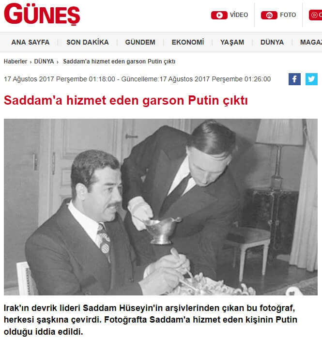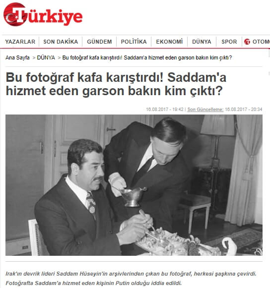 Söz konusu fotoğraf ilgili dönemde bazı haber sitelerinde “Saddam’a Hizmet Eden Garson Şuan Bir Devlet Başkanı” ya da “Saddam’a hizmet eden garson Putin çıktı” gibi başlıklarla aktarılmıştı.
