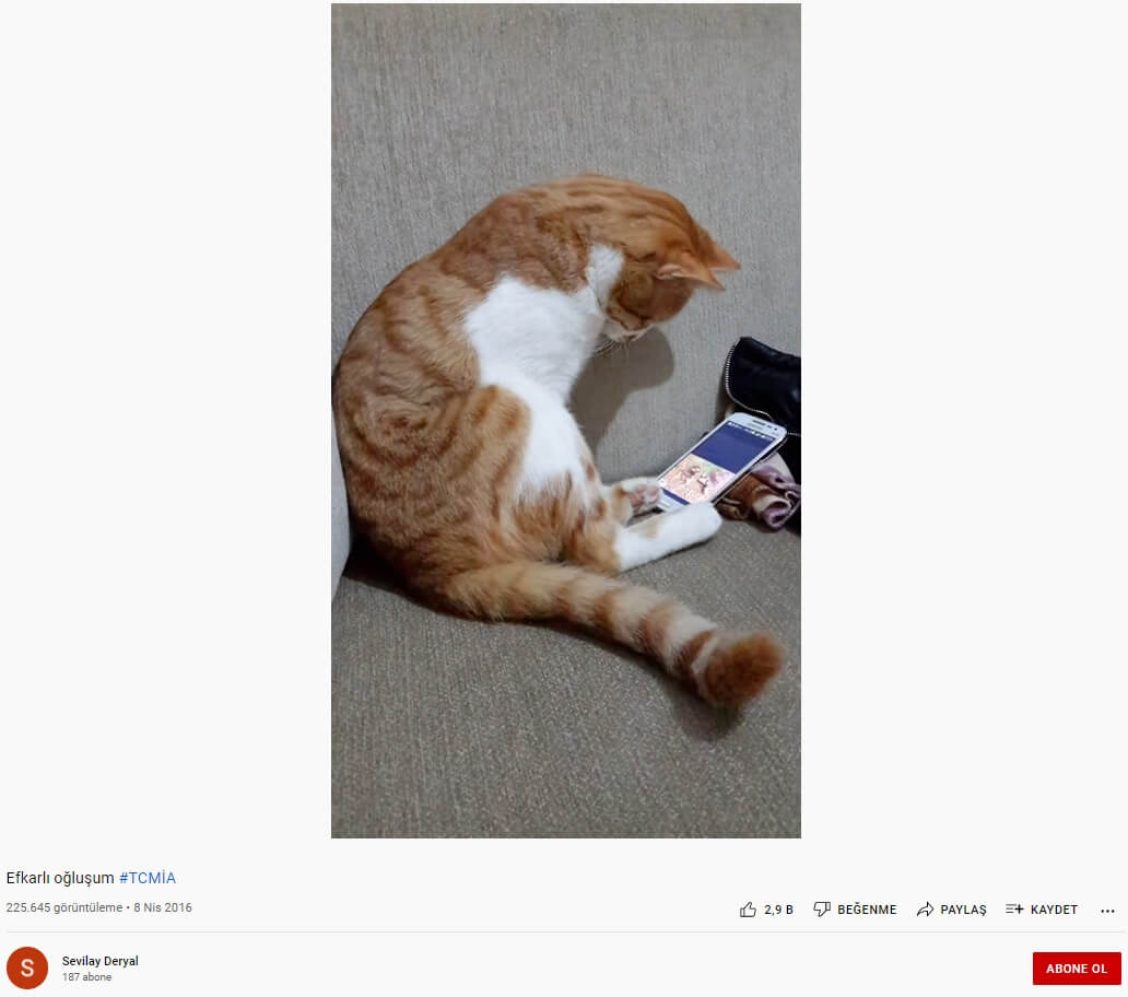 Görüntünün kaynağı, Sevilay Deryal’ın “Efkarlı oğluşum #TCMİA” başlığıyla 8 Nisan 2016 tarihinde Youtube profiline yüklediği video.