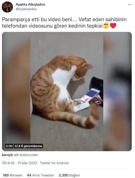 “Paramparça etti bu video beni… Vefat eden sahibinin telefondan videosunu gören kedinin tepkisi🥺❤️”