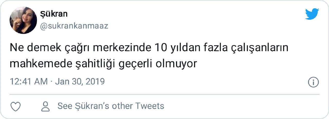 “Ne demek çağrı merkezinde 10 yıldan fazla çalışanların mahkemede şahitliği geçerli olmuyor”