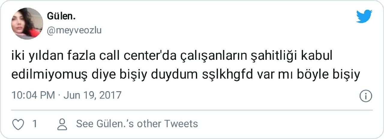 “İki yıldan fazla call center’da çalışanların şahitliği kabul edilmiyormuş diye bişiy duydum sşlkhgfd var mı böyle bişiy”
