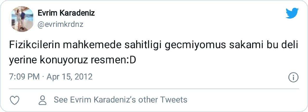 “Fizikçilerin mahkemede şahitliği geçmiyormuş şaka mı bu deli yerine konuyoruz resmen”