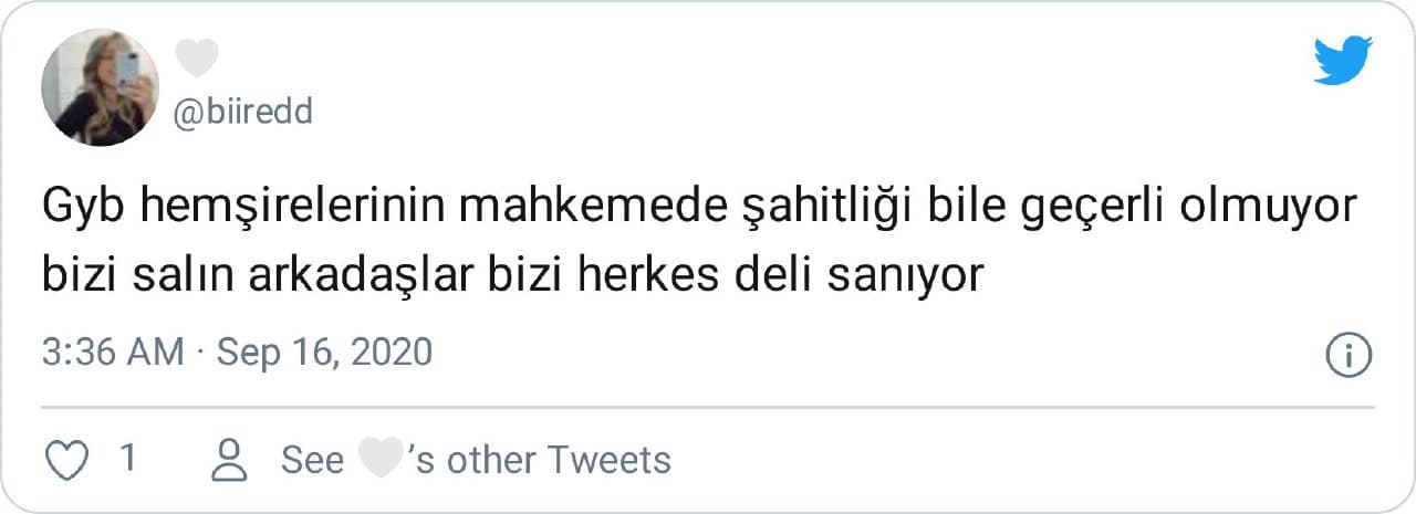 “Gyb hemşirelerinin mahkemede şahitliği bile geçerli olmuyor bizi salın arkadaşlar bizi herkes deli sanıyor”