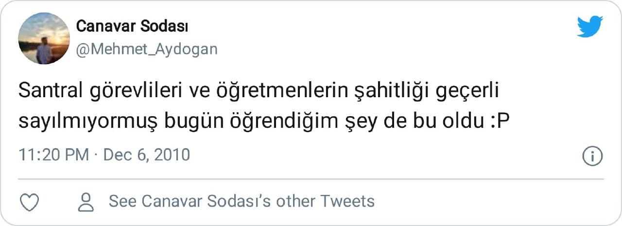 “Santral görevlileri ve öğretmenlerin şahitliği geçerli sayılmıyormuş bugün öğrendiğim şey de bu oldu”