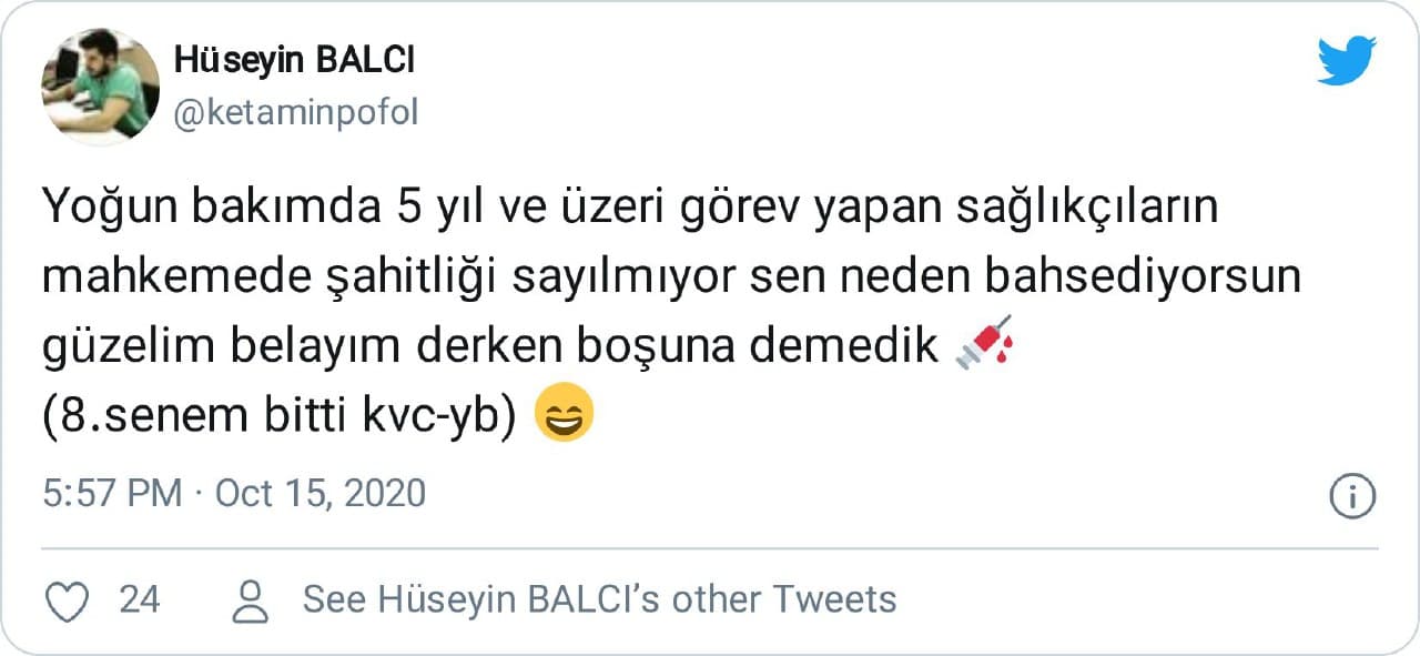 “Yoğun bakıma 5 yıl ve üzeri görev yapan sağlıkçıların mahkemede şahitliği sayılmıyor sen neden bahsediyorsun güzelim belayım derken boşuna demedik”
