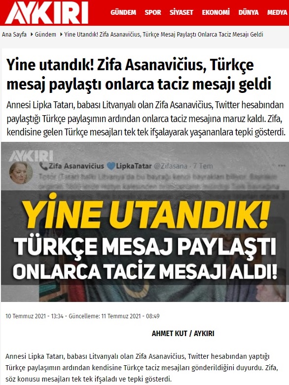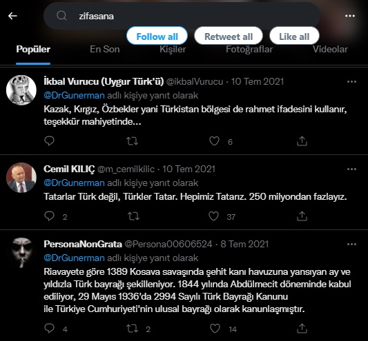 Bazı haber siteleri ve Twitter kullanıcıları tarafından gerçek bir karakter sanılan Dr. Levent Günerman adlı “DrGunerman” uzantılı “1070310643436265472” ID numaralı profil de geçmişte, annesi Lipka Tatarı, babası Litvanyalı Zifa Asanavičius adlı “zifasana” uzantılı bir kadın kisvesindeydi (Twitter aramalarında zifasana uzantısının Levent Günerman adlı profile yönlendirildiği, zifasana uzantılı hesaba yapılan yorumların da aynı hesaba atıf yaptığı görülüyor).