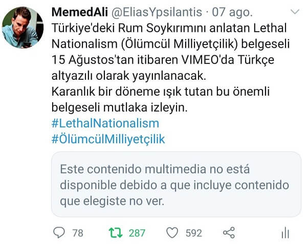 Trabzonlu bir Pontos Rumu ve doktoralı olduğunu iddia ederek Türkiye Cumhuriyeti’ni (Rum başta olmak üzere diğer bilimum) (sözde) soykırım ile itham eden Elias Ypsilantidis adlı profilin muhayyel bir karakter olduğunu aktarmıştık (Bahsi geçen sahte profilin Ali Osman Alayoğlu’na ait olduğu da ileri sürülüyor) (Söz konusu profil daha sonra kapanıp bu defa “Trabzonlu bir Pontos Rumuyum. Ekseriyetle Trabzonluları sevmem. Doktoralıyım. Trilingualim. Evli, çoluk çocuk sahibiyim.” açıklamasıyla eliasyphiandis uzantılı 1793930543672786944 ID’li hesap açılmış).