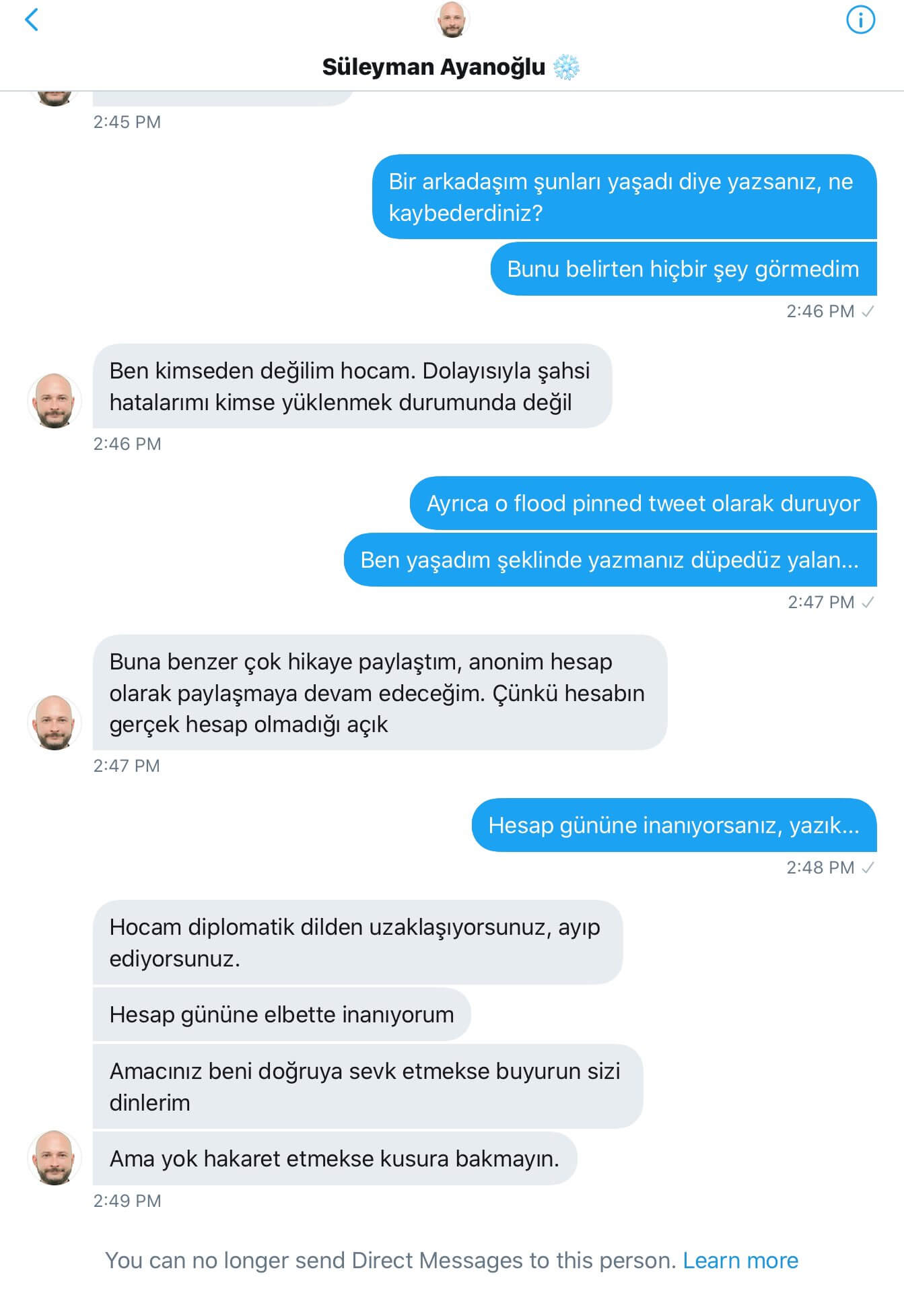“Türkiye’den Neden Ayrıldım?” konulu paylaşım silsilesi sosyal medyada dikkat çeken Süleyman Ayanoğlu adını kullanan “@s_ayanoglud” uzantılı Twitter profili, FETÖ’ye müzahir sahte bir (troll) hesap olduğunu ikrar ettiği mesajların ifşa edilmesinin ardından hesabını kapatmıştı.
