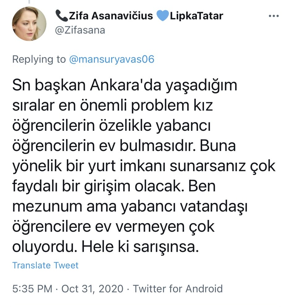 Söz konusu sahte profil, Litvanya’da yaşayan Tatarların Osmanlı döneminde 1600’lerde Hotin kalesinin düşmesi sonrası kaledeki bayrağı kendi bayrakları olarak kabul ettiği, günümüzde de camilerdeki nikah törenlerinde bayrak eski gelenekte olduğu gibi kullanılmaya devam ettiği iddiasını içeren paylaşımıyla dikkat çekmişti.