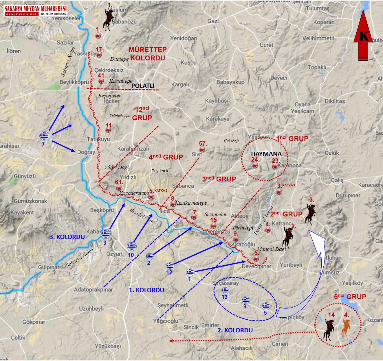 Sakarya Meydan Muharebesi’nde Türk Ordusu’nun ve Yunan kuvvetlerinin cephede konumlanması ise şu şekildeydi: