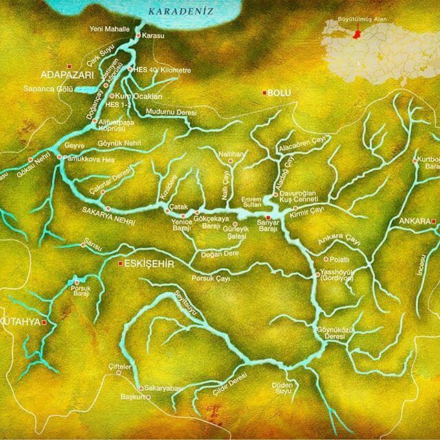 Sakarya Nehri deltasında Sakarya, Bolu, Ankara, Eskişehir, Bilecik, Bursa, Kütahya, Konya, Afyon illeri yer almaktadır.