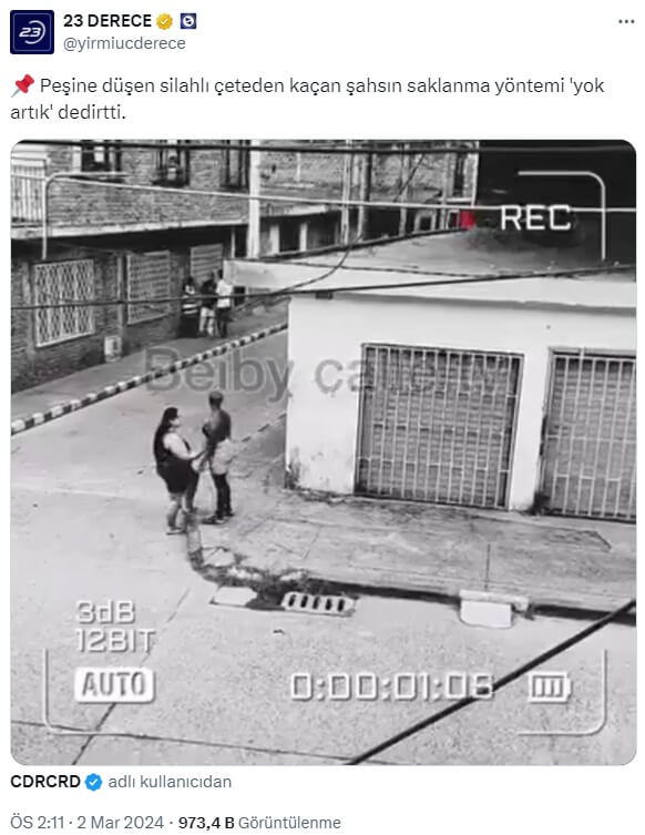 23 Derece (@yirmiucderece): ” Peşine düşen silahlı çeteden kaçan şahsın saklanma yöntemi ‘yok artık’ dedirtti.”