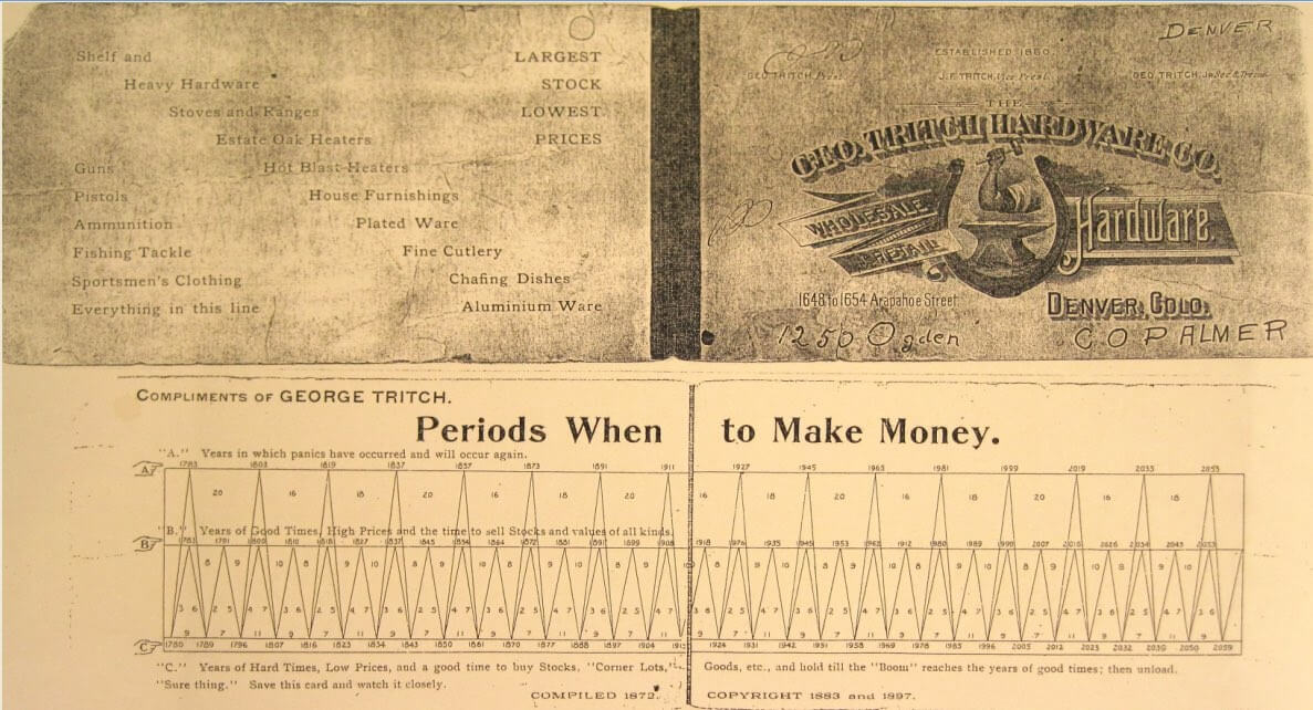 George Tritch’in Benner’ın 1891 yılına kadar uzanan orijinal döngüsünü 2059’a kadar uzattığı ve hisse senetlerinin ne zaman alınıp satılacağına ilişkin talimatlarla birlikte tabloyu 1883 yılında yayımladığı düşünülüyor (George Tritch’in bahsi geçen tahminin kaynağını henüz tespit edemedik).