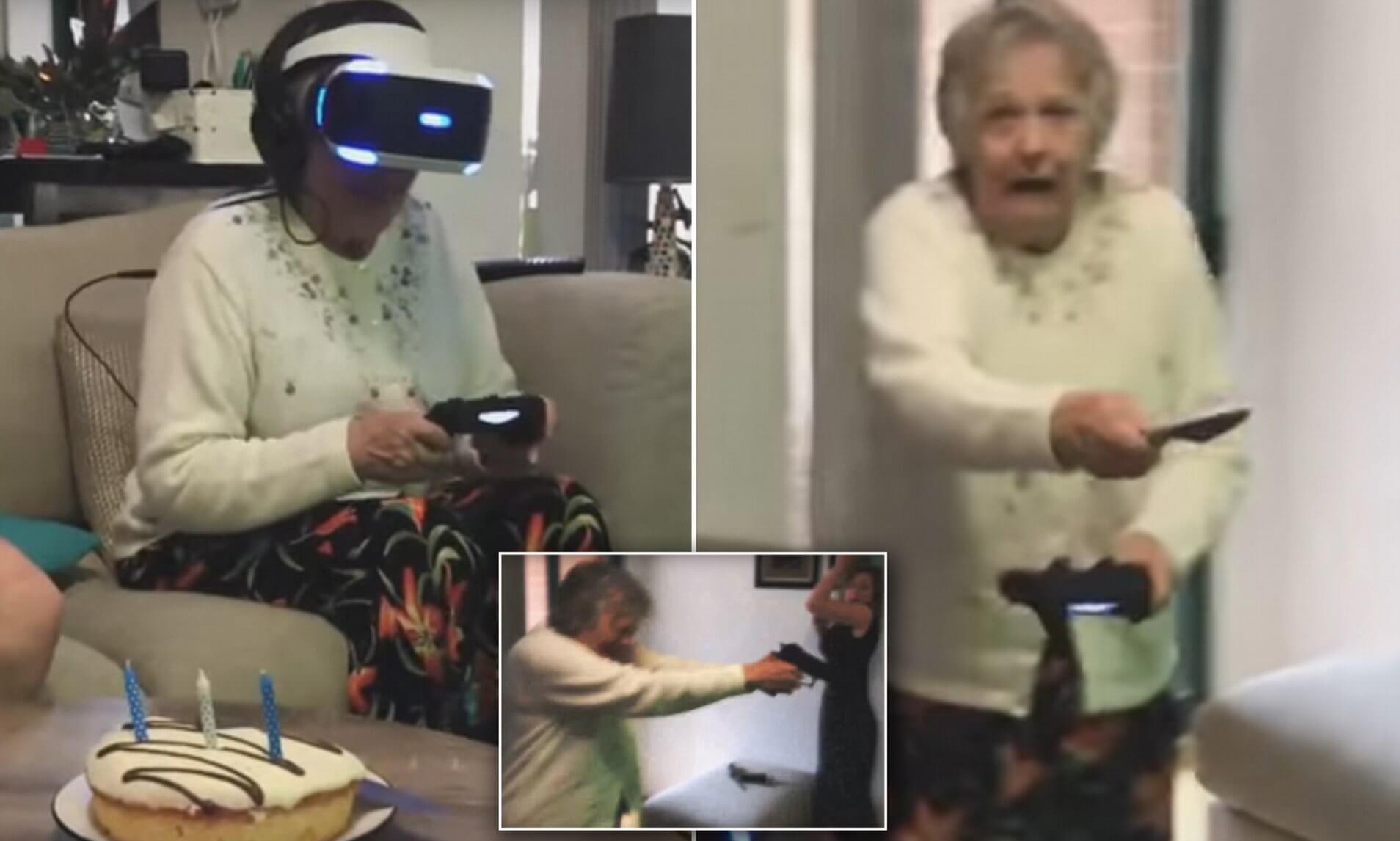 Sanal gerçeklik gözlüğü takan yaşlı kadının oyunun etkisinde kalarak etrafına bıçak çektiği ve televizyona silahla ateş ettiği görülen video Skills in Time adlı Youtube profili tarafından hazırlanan bir mizahî içerik.