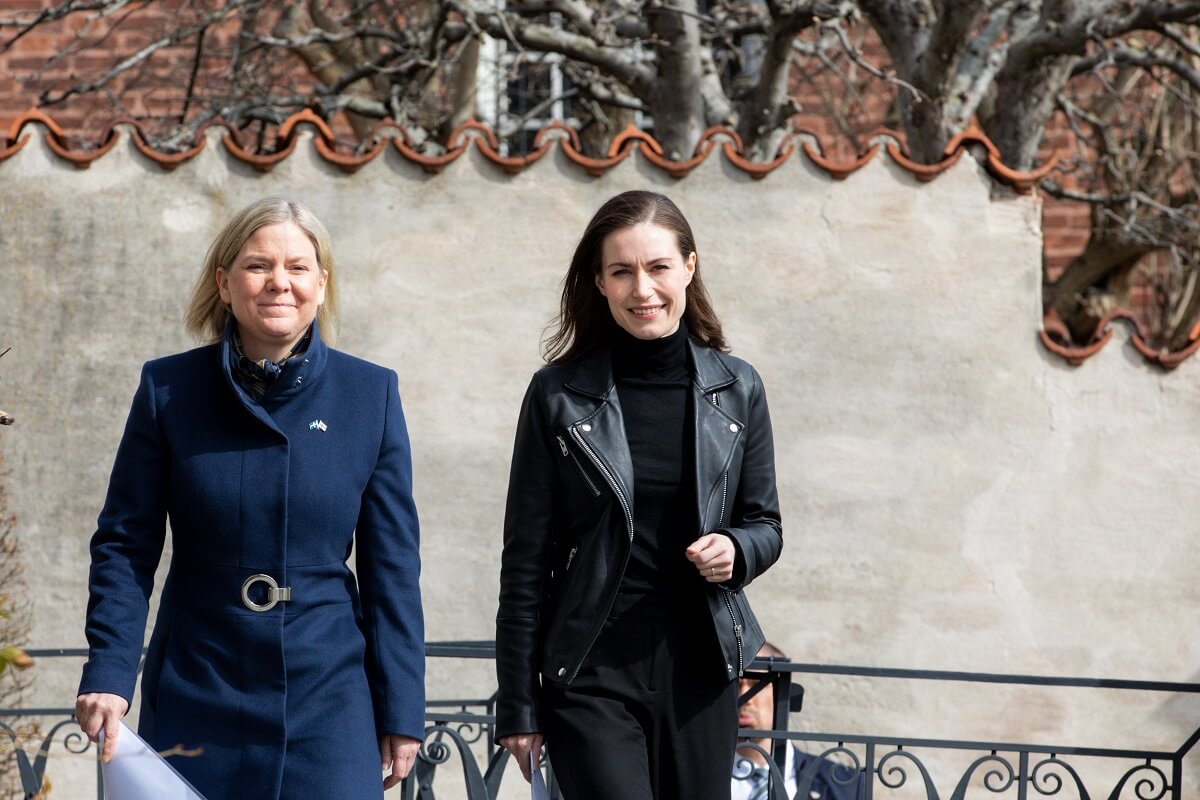 Fotoğraf, Finlandiya Başbakanı Sanna Marin’in İsveç Başbakanı Magdalena Andersson ile Stockholm’de 13 Nisan 2022 tarihinde NATO ve güvenlik işbirliği konulu toplantı için bir araya geldiği anda kaydedilmiş.
