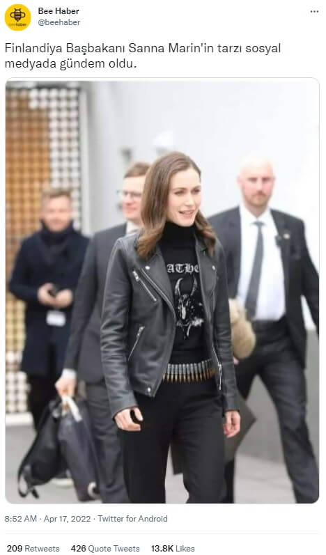 Fotoğraf sosyal medyada “Finlandiya Başbakanı Sanna Marin’in tarzı sosyal medyada gündem oldu” notuyla paylaşılmıştı.