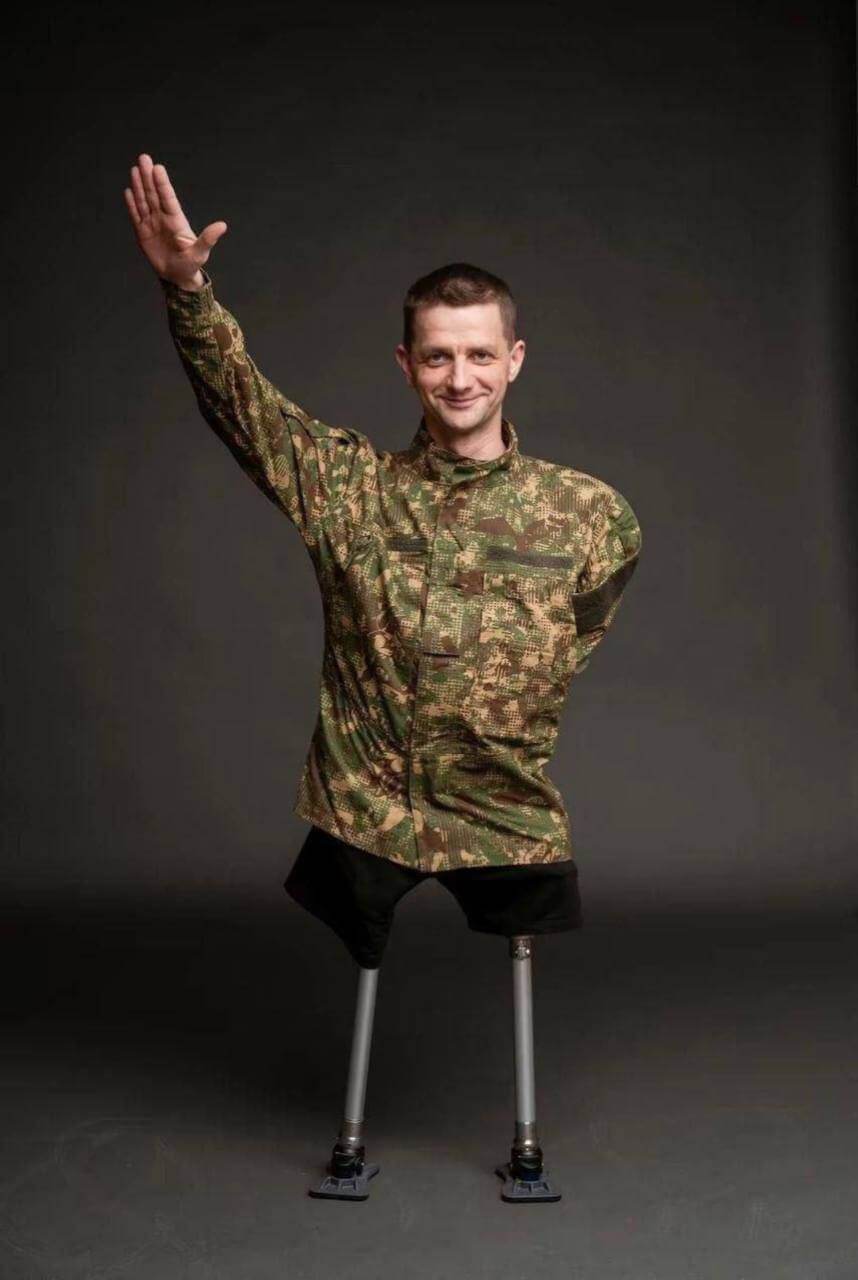 “In short – those news are fake and fabricated. Of course it’s NOT a Nazi salute . Moreover, he is not even from Azov, even though it’s irrelevant. So the information you found about him doing a nazi salute is false and you will get a more formal response from Roman himself soon. He is having trouble balancing on his new prosthetics and raising his hand to simply balance …nothing less or nothing more. Please find a picture of Roman doing an actual salute during the photo session.”