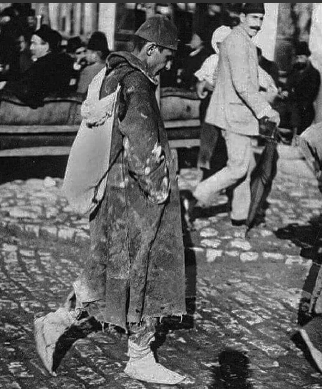 “1912/3 yılında Balkan Savaşından dönen yorgun asker” notuyla paylaşılan görselin kaynağını tespit edip arka planını / bağlamını / öyküsünü bir türlü teyit edemedik.