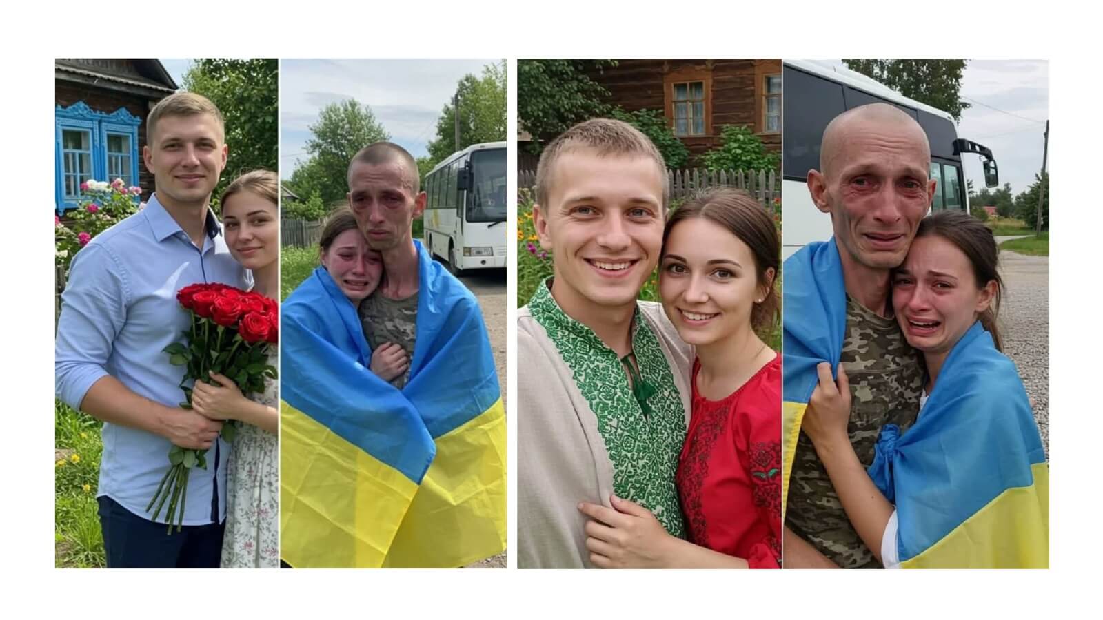 Geçtiğimiz aylarda aynı temada yapay zekâ aracıyla hazırlanan farklı görseller de aynı şekilde “730 günlük esaretten sonra, ülkesine dönen Ukraynalı.” gibi ifadelerle paylaşılmıştı.