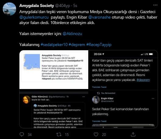 Sedat Peker’in BAE’de MİT operasyonu ile yakalandığı iddiasını içeren bahse konu tweetler, haber sitelerinde kendine yer buldu, sosyal medyada gerçek sanılarak yaygın şekilde paylaşıldı.
