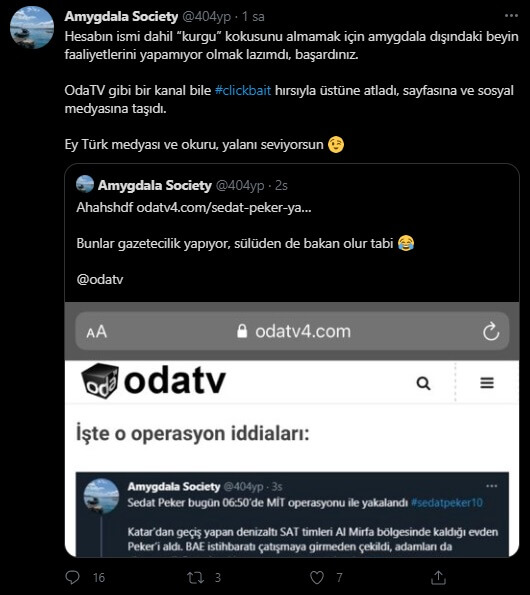 OdaTV gibi bir kanal bile clickbait hırsıyla üstüne atladı, sayfasına ve sosyal medyasına taşıdı.